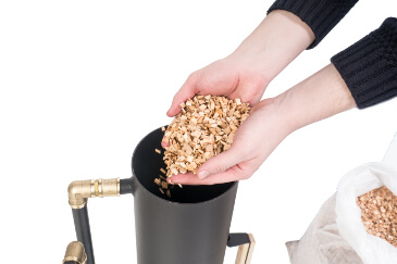 У “Ворона” воздух нагнетается напрямую в очаг горения. Бункер для щепы расширен и лишен ненужных деталей — всё это является гарантией не зависящей щепы.